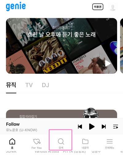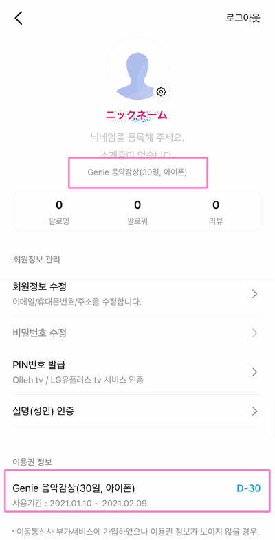 日本のIDで操作されてる場合は韓国IDにログインしてgenieアプリを開きます。