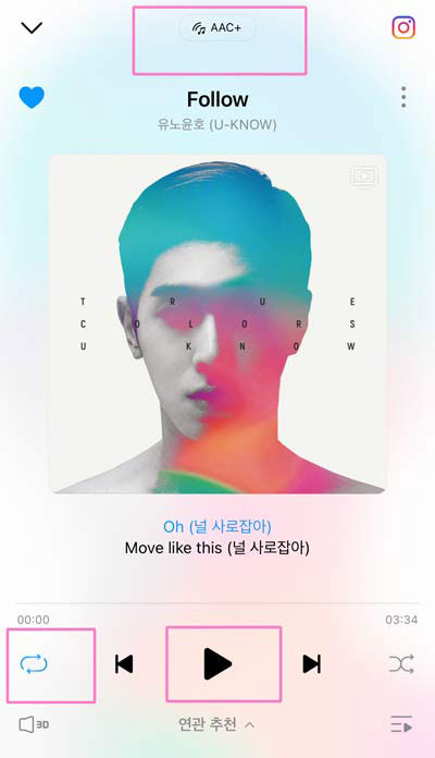 ㉕左下の丸い矢印のアイコンをタップしてリピート再生、準備完了♡