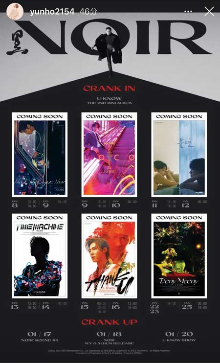 ユンホは今月18日、2ndミニアルバム「NOIR」全曲の音源とタイトル曲「Thank U」のミュージックビデオを公開する予定だ。