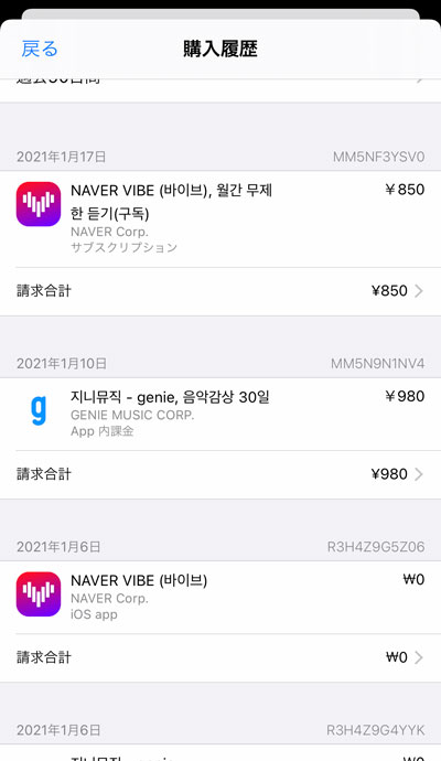 購入履歴に表示されずにクレジットカードで決済したものは、直接クレジット会社に確認をして下さい。