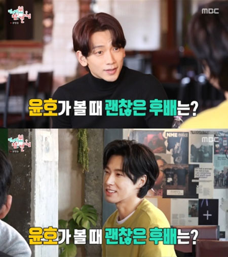 ピは"SM後輩の中で一番まともな後輩が誰か"と尋ね、これはKCMユージンと言わ叱るた。ユンホは「エスパーにカリーナという友人がいる。実際に見て魅力ある。挨拶をするまでは、ただの後輩だからよくして欲しいた」と賞賛した。横から聞いていたKCMは「エスパパということが分かった」と話して笑いを誘った。