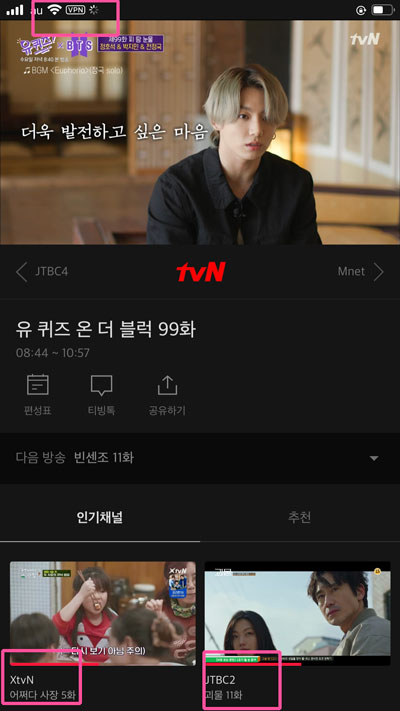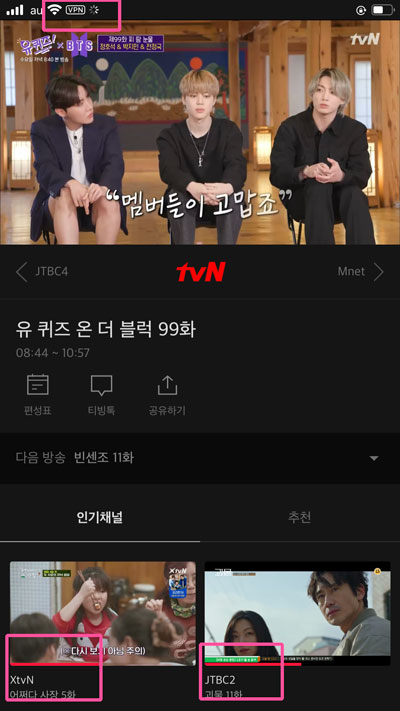 上記準備が出来たらtvN、Mnet 等 試聴に進みます。