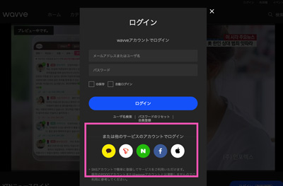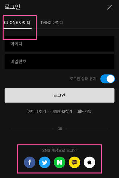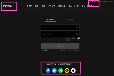 各ページの右上に『ログイン』ボタンがあります。SNS(Twitter、カカオトーク、AppleIDなど)で登録をします。”4.韓国アプリにログイン”の手順で進めてください。