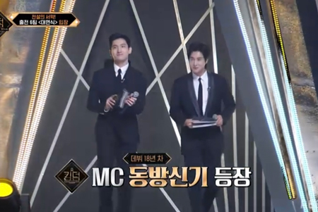 順位発表だから出演グループさん達は緊張の時間だけど、ユノとチャンミンのこのお衣装も凄く良くて泣いてる pic.twitter.com/mMa4Kbbr2V