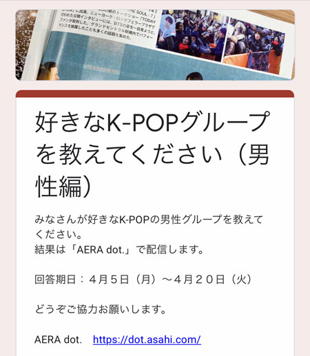 ”好きなKPOPグループを教えてください”アンケートやってます!