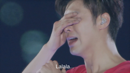 「実は昨日もちょっと泣いてたんで、今日は絶対泣かないって約束したんですけど、僕は、泣きたい瞬間があってもずっとずっと我慢してたんですよ。で、一番幸せなときだけ泣きますって、言ったんですけど、みなさんのおかげで今日は本当にしあわせでした。そして、これをいつ言うか悩んでたんですけど、実は、東方神起の単独ライブ、ツアーは……しばらく会えないと思うんですけど、ほんとに、今まで応援してくださった方、ありがたいし、すぐこのふたりで戻ってきて、みなさんの前で会うから。だから、元気よく、待ってください。僕が『ただいま』って言ったら、みんなで『お帰り』って必ず言ってください。」── ユンホ