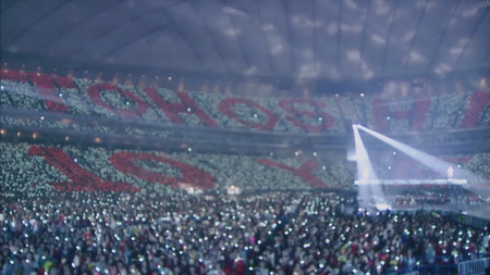 「東方神起」コールに後押しされて、アンコールはバリバリのアッパーチューン「B.U.T(BE-AU-TY)」からスタート。そして「アンコールもらって出てきたんですけど、あと数曲しか残ってないですね。」とチャンミンがつぶやけば、ユンホは「寂しいですけど、みなさんいかがでしたか? 本当に懐かしい曲も歌っているんですけど、みなさんはどの曲が好きだったですか?」と、呼びかける。5万5000人が一斉に自分の思い思いの楽曲のタイトルを叫ぶため、「声を合わせて。」と明らかに無理な要求を出しつつも、ユンホは「東方神起の曲は名曲がいっぱいあるから、いつか全部歌います。」と、観客に約束。そしてバックステージの映像など今までなかった演出に触れて、「今回のライブが、東方神起にとって意味のあるライブだから、あそこにいる(舞台演出を手がけたTRFの)SAMさんもたくさん悩んでたし。みんながひとつになって。……よかったですか?」と、口にする。