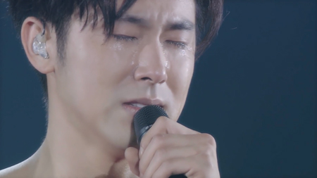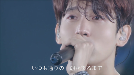 そしてふたりは、様々な思いを胸に抱いて「サクラミチ」を披露する。声を重ねて、じっと前を見据えるチャンミンと、うつむき気味で切々と歌い上げるユンホ。続く「With Love」では、ふたりへのサプライズとして、ファン、そしてこれまで東方神起のライブを支えてきたスタッフたちの写真とメッセージがスクリーンに映し出される。さらに客席に目をやると、そこには「TOHOSHINKI 10YEARS」の文字。感極まったチャンミンは、まつ毛を濡らし、目を赤くして歌う。一方のユンホは、涙を堪えるようにギュッと目をつぶって歌唱する。やがて起こる大合唱は、ユンホからの「もっと大きな声で!」の求めに、さらに大きなものとなる。そして、「みんな、本当にありがとーー!!!」と、もう目を開けてはいられないユンホは絶叫し、マイクは彼の嗚咽を拾う。スクリーンに映し出される「With Love」の文字の下で、顔を手で覆って号泣するユンホに近づくチャンミン。そしてチャンミンはそっとユンホの肩を抱いたのだった。