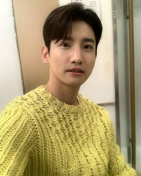 写真には、イエローのニットを着たチャンミンの姿が写っている。Vサインをして優しく微笑むチャンミンの姿が見る人をときめかせています。