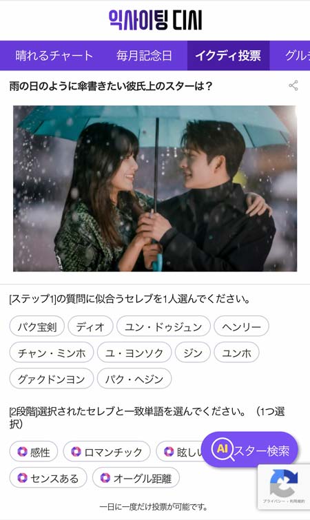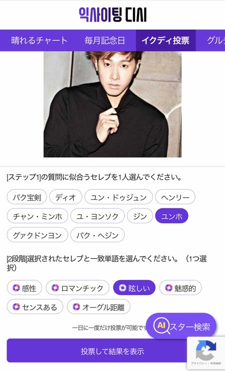 エキサイティングディッシュは、16日から22日まで「見ているだけでも笑顔の私のスターは?」というテーマで投票を行った。