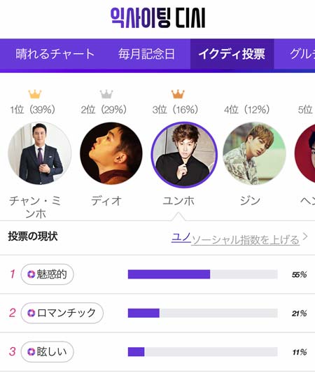 1位のユノ・ユンホさんの笑顔です(*´ω`*)