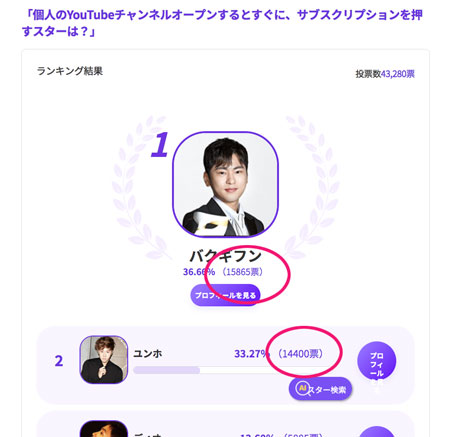 ▼個人のYouTubeチャンネルをオープンするとすぐに、サブスクリプションを押すスターは?(別ウィンドウで開きます)