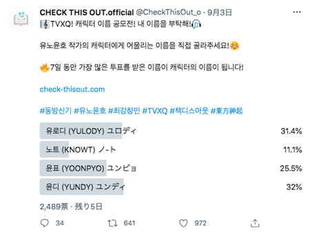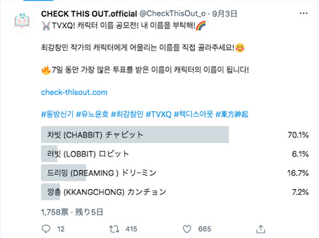 東方神起CHECK THIS OUTキャラクター名投票状況♪