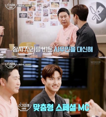 グループEXOメンバーシウミンコロナ19確定の影響で東方神起チャンミンがスペシャルMC席に座った。