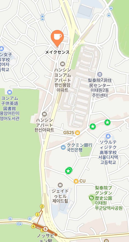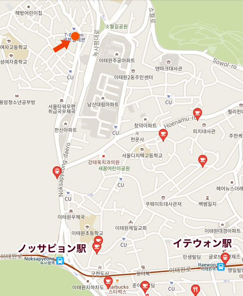 ●アクセス:6号線ノッサピョン駅1番出口 / イテウォン駅1番出口