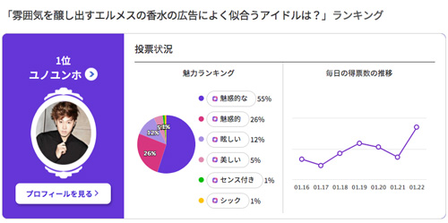 ユノ1位♡『雰囲気をかもし出すエルメスの香水の広告の良く似合うアイドル』