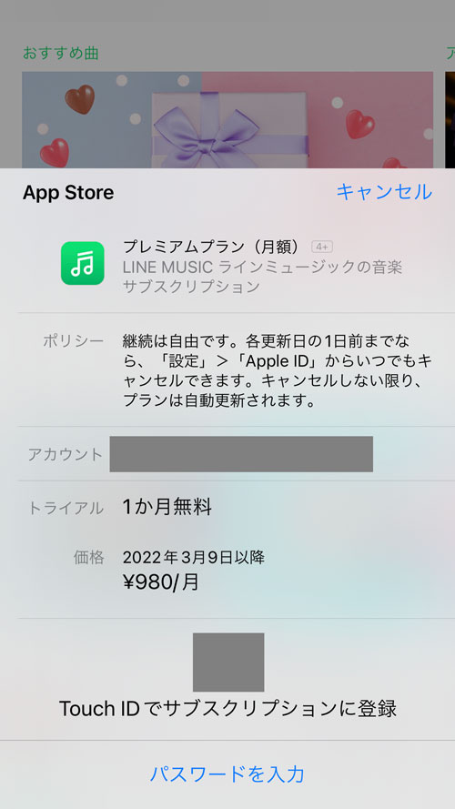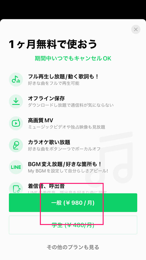 STEP①LINE MUSIC有料会員になる(※初回登録時は1か月無料体験可能)