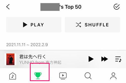 STEP③【“あなたのお名前”‘s TOP50】の項目に再生回数が表示されていることをご確認のうえ、2月16日(水)中に画面をスクリーンショット撮影。