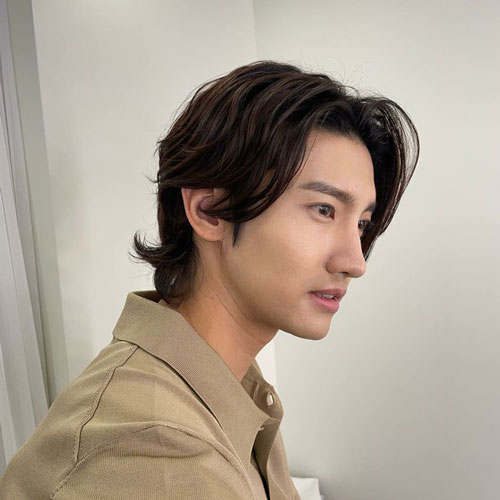 写真には、ベージュのポロシャツ姿のチャンミンが写っています。 まるで彫刻像のような横顔に、少し長くてウェーブのかかったヘアスタイルがよく似合っています。