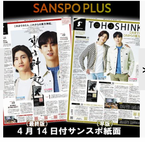 東方神起が本日14日付東京本社版の新企画「S+(プラス)」に登場!