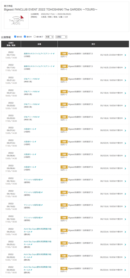 東方神起 ファンミチケット(調整、機材席など)発売中!!
