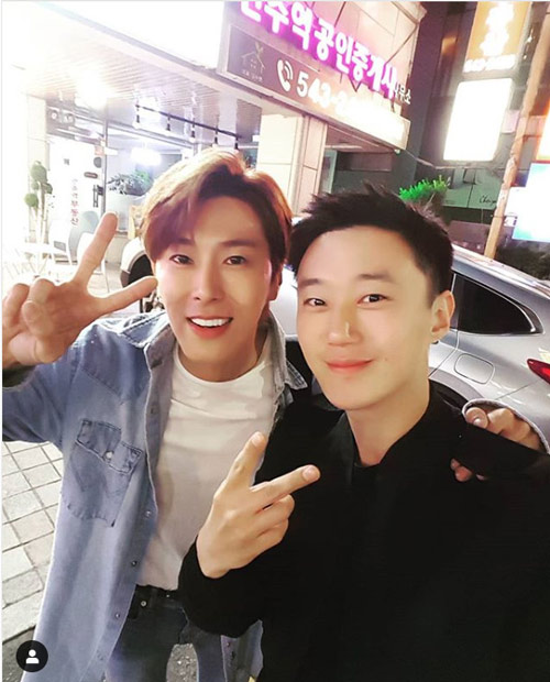 ジュソクさんとの写真、ユノの表情がリラックスしてる。