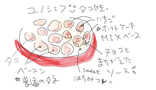 大胆に、タコ焼き器にタネを思いっきり流し込んで