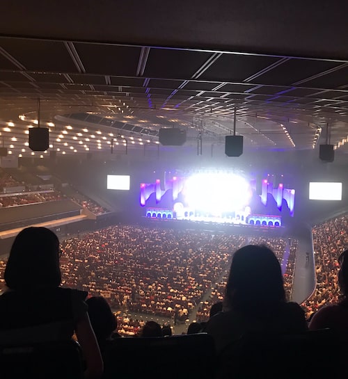 アリーナブロックに進み、真ん中でトロッコ止まって歌う時