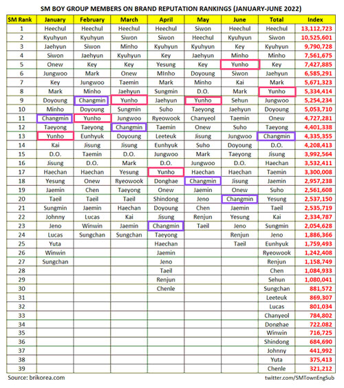 ▼SM男性メンバーブランドランキング 2022年 1月〜6月