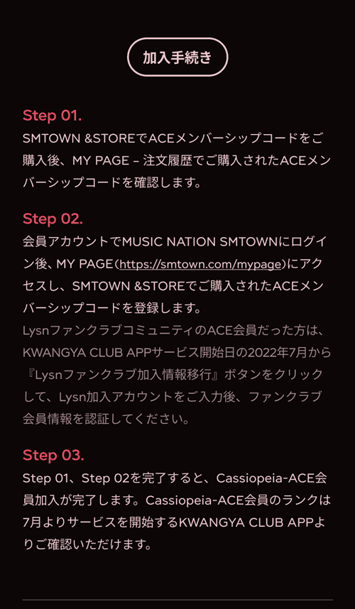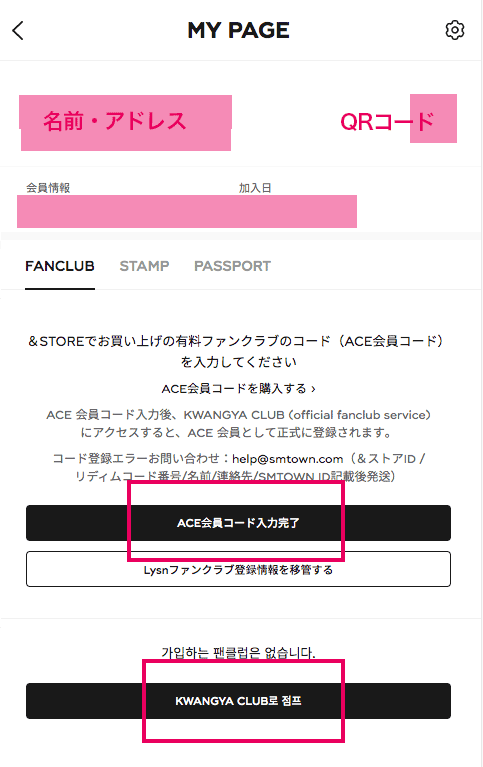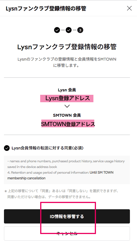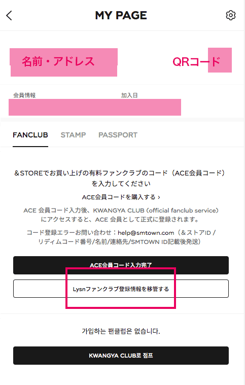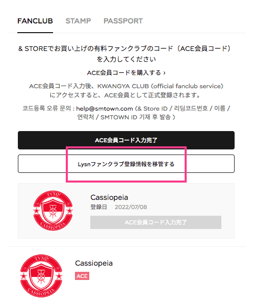 ③ACE会員(元)の方はLysnファンクラブ登録情報を移管する。