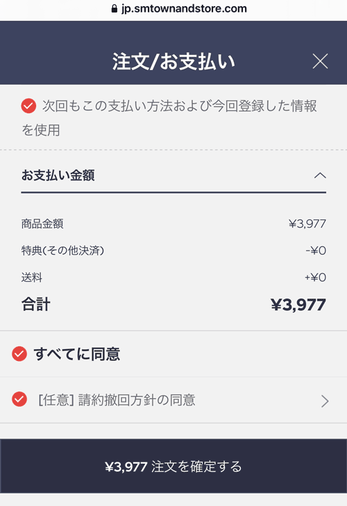 登録時のアドレスはSMTOWNANDSTOREのアドレスと同じにすると覚えやすいですね。(違うアドレスでも構いません)