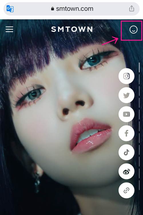 ④MUSIC NATION SMTOWNにアクセス、右上のマイページをタップ