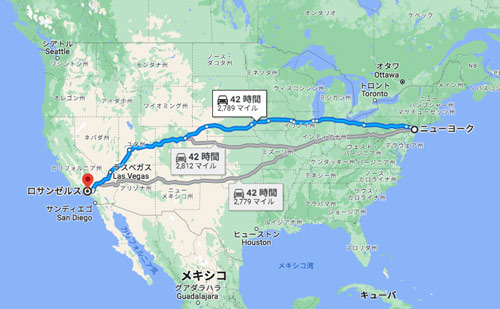 ニューヨークとロサンゼルスは5000km(ーー;)