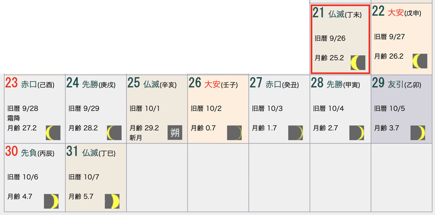 友引(ともびき) お昼時以外は吉の日。大安の次に良い日とされます。