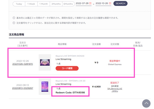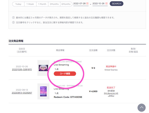 ★購入後チケットを確認、コード番号待ち状態です。
