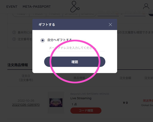 ★”自分へギフト” →メールアドレスを入力