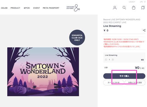 “SMTOWN WONDERLAND 2022” RED CARPET LIVE_HalloweenチケットGET!!