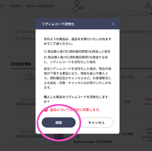 ★しばらくすると、マイページにリディムコードが表示されます。