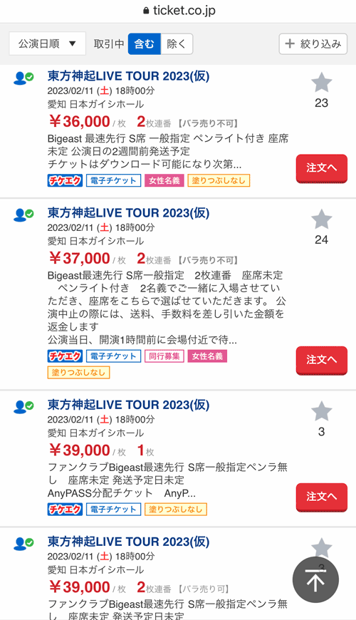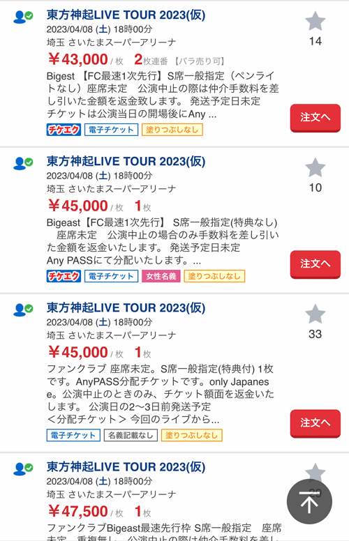 チケット転売されています〜。。