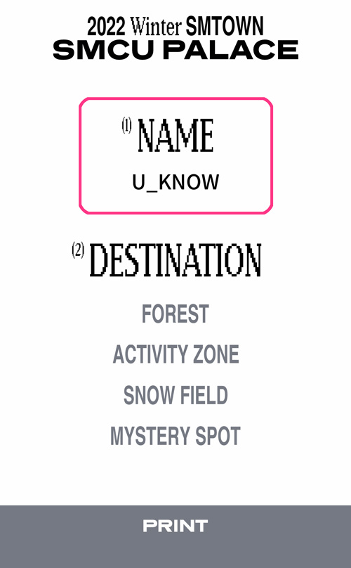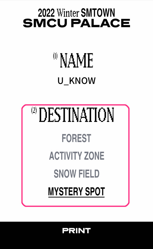 ④DERSTINATIONから好きなタイプを選んで、下の”PRINT”をタップ