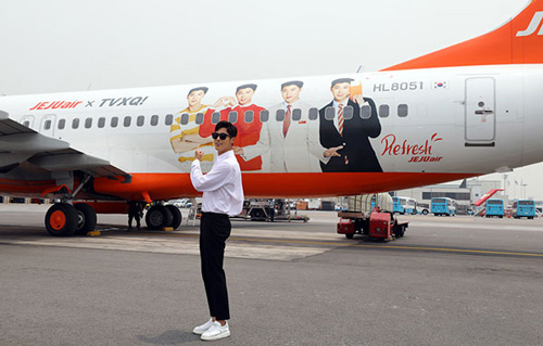 東方神起・ユンホさん、チェジュ航空の自身のラッピング機に搭乗