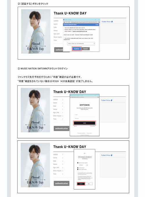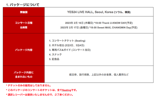 チケットの予約はインターネット予約サイトのイエス24で可能です。ユノ・ユンホ誕生日パーティーは1月31日午後8時ファンクラブ先行予約、2月2日午後8時一般前売りをする。チェガンチャンミン誕生日パーティーは2月1日午後8時ファンクラブ先行予約、2月3日午後8時一般前売りを行う。