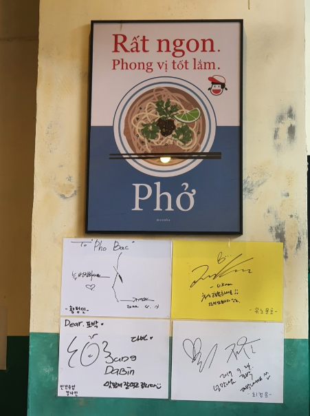 ユノが以前行った ライスヌードルのお店 ファンジョンミンさんとユノのサインが仲良くならんでいる。