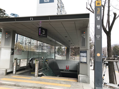 地下鉄3号線に乗って、下車駅はイルウォン駅(逸院/일원역)348番