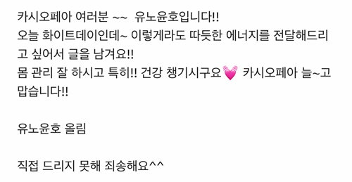 カシオペアエースにユノからのコメントが書き込まれていました。