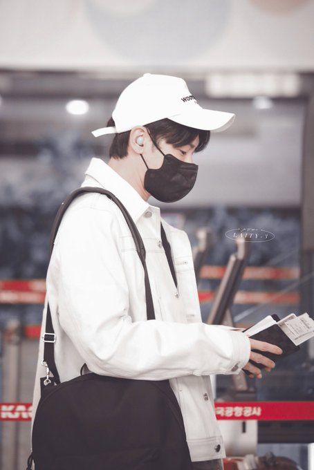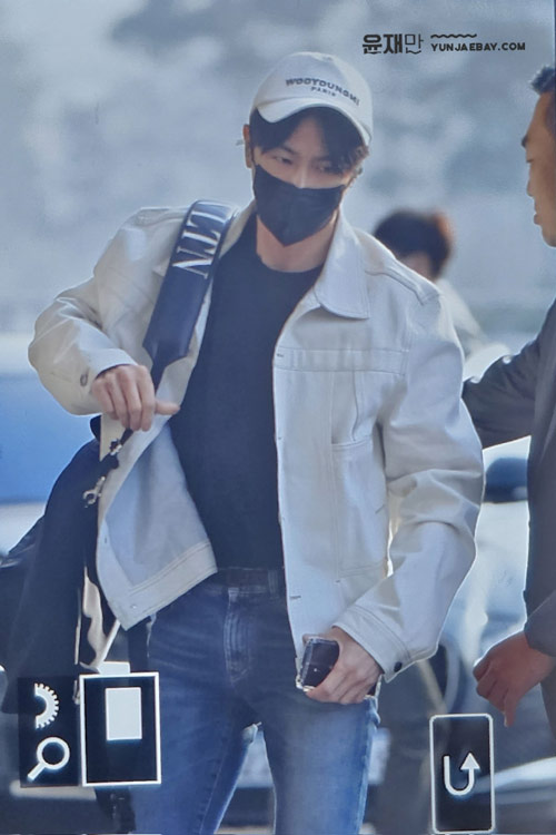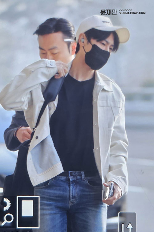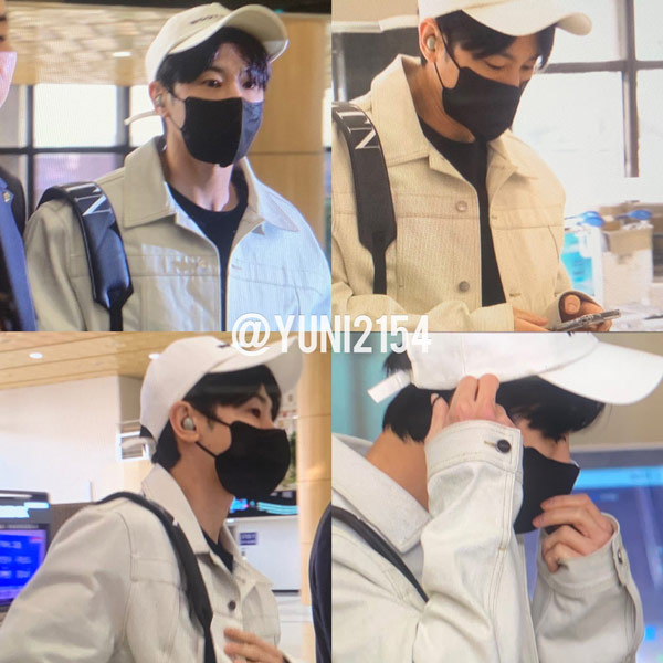 東方神起ユノ・ユンホが出国場に向かってポーズを取っている。