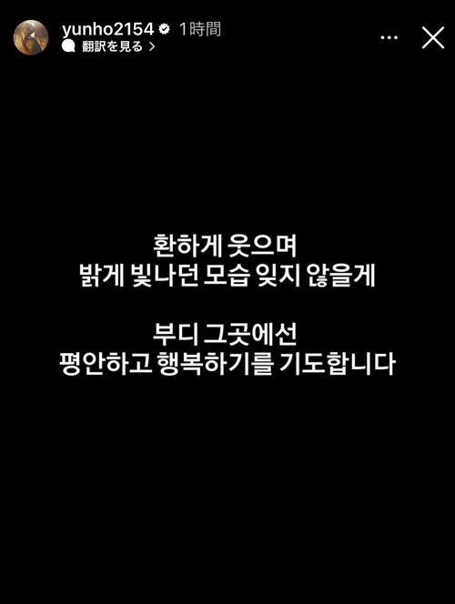 20日、ユンホは自身のインスタグラムストーリーに「明るく笑って明るく輝いた姿を忘れない」という文を掲載した。