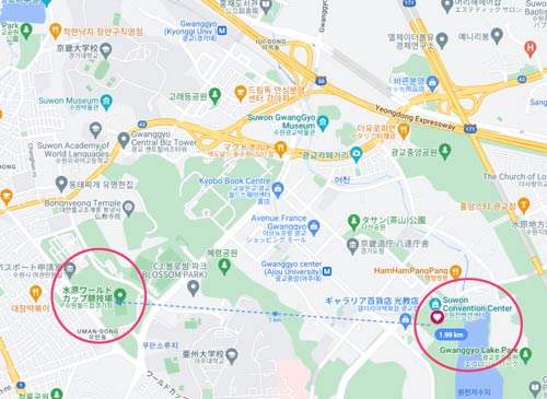 ●地下鉄1号線、又は韓国鉄道の水原駅からだと4キロ程。