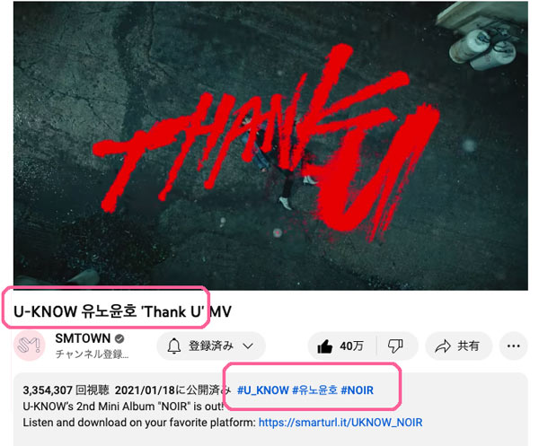 ※MVが公開されてから、『RealityShow』とユノの名前を入力して検索をかけます。MVの詳細に記載されるタグが『UKNOW』又は『U_NKOW』、『ユンホ』『유노윤호』など、カムバのMVを見て検索ワードをチェックします。