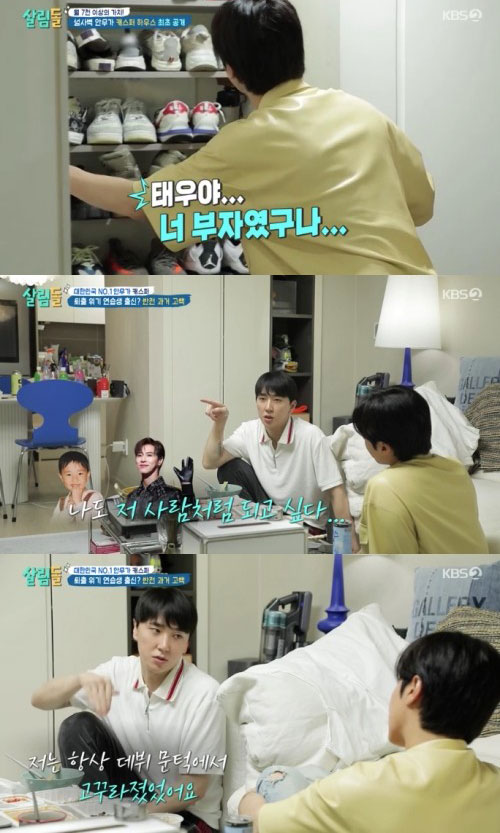 練習が終わり、ユンホはキャスパーの家を訪れた。 月収7千万ウォンだと明らかにしたキャスパーの家は入口からものすごい靴で目を引いた。 キャスパーは、収入の 30% をファッションに費やしていると述べた。 ユンホは100足ほどの靴を見て「テウ、お前金持ちだったんだ」と驚いた。